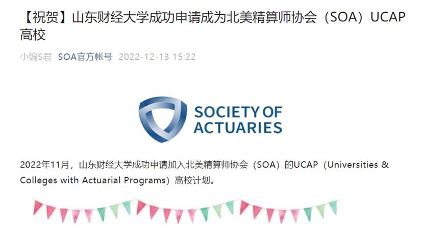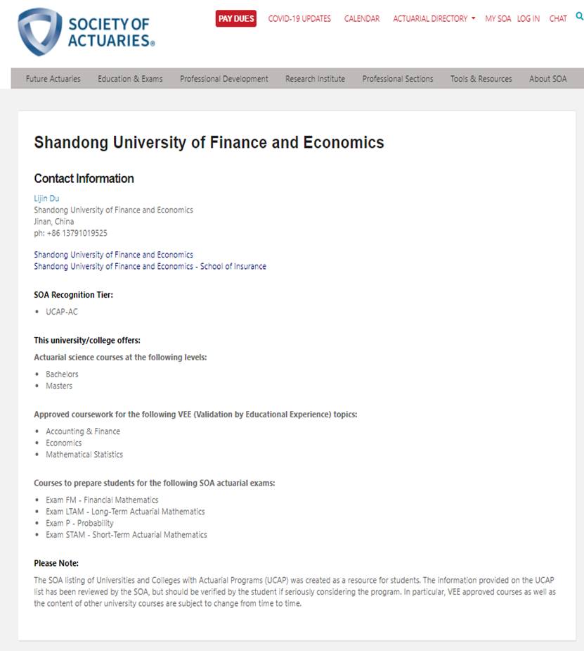 近日,北美精算师协会(Society of Actuaries,简称SOA)官方网站公布,小黄书 精算学专业正式获得SOA的UCAP高校计划(Universities & Colleges with Actuarial Programs)认证,这进一步提升了小黄书 精算学专业的国内外知名度,也标志着小黄书 精算学专业的本科国际化教育已获得国际认可。