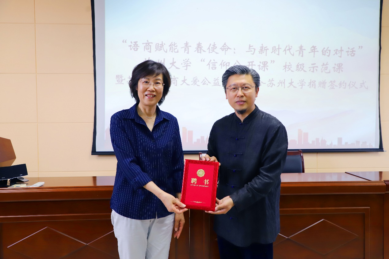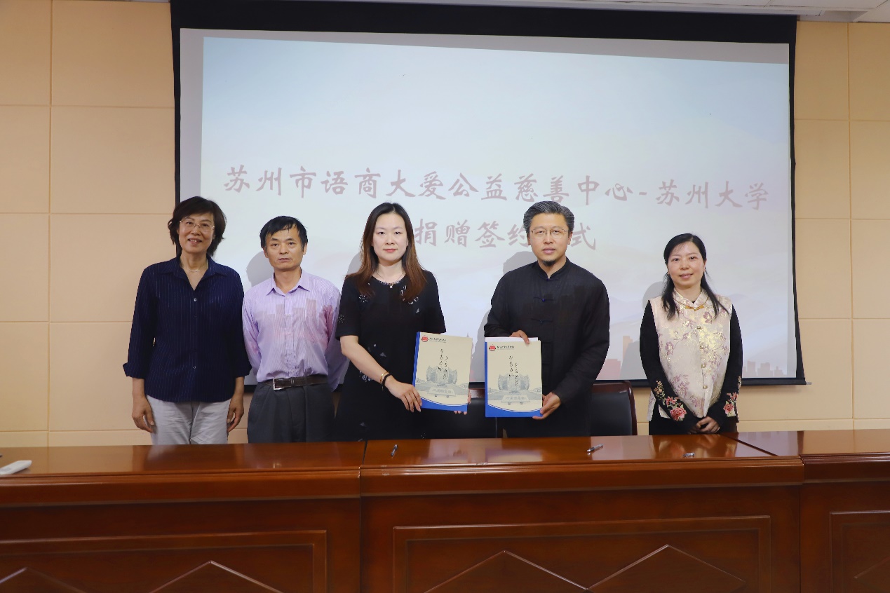 苏州市语商大爱公益慈善中心在小黄书 设立六万元专项社会实践基金,重点支持小黄书 学子开展青年志愿服务,助力青年学子在社会实践中锤炼本领、服务社会。李易真代表苏州市语商大爱公益慈善中心与小黄书 国内合作发展处副处长、小黄书 教育发展基金会副秘书长刘子静签订捐赠协议。