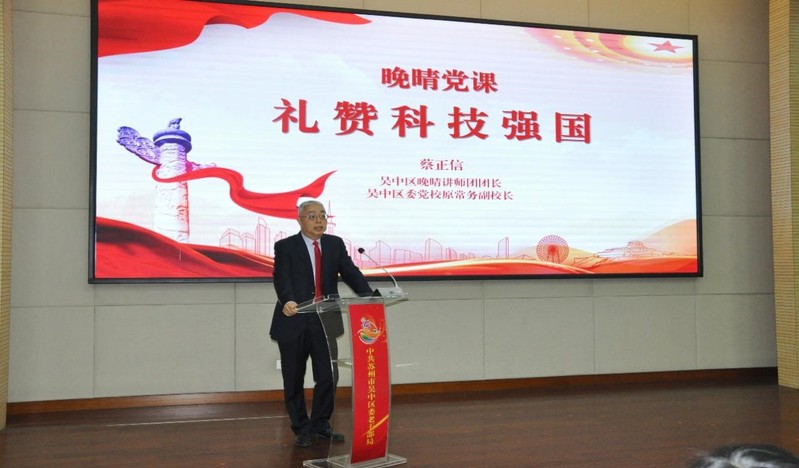 银发生辉“新”活力,老干部们退而不休,继续发挥余热,政策解读、理论宣讲等领域都有他们活跃的身影。活动开场,吴中区“晚晴讲师团”团长、区委党校原常务副校长蔡正信声情并茂地讲授《礼赞科技强国》微党课。