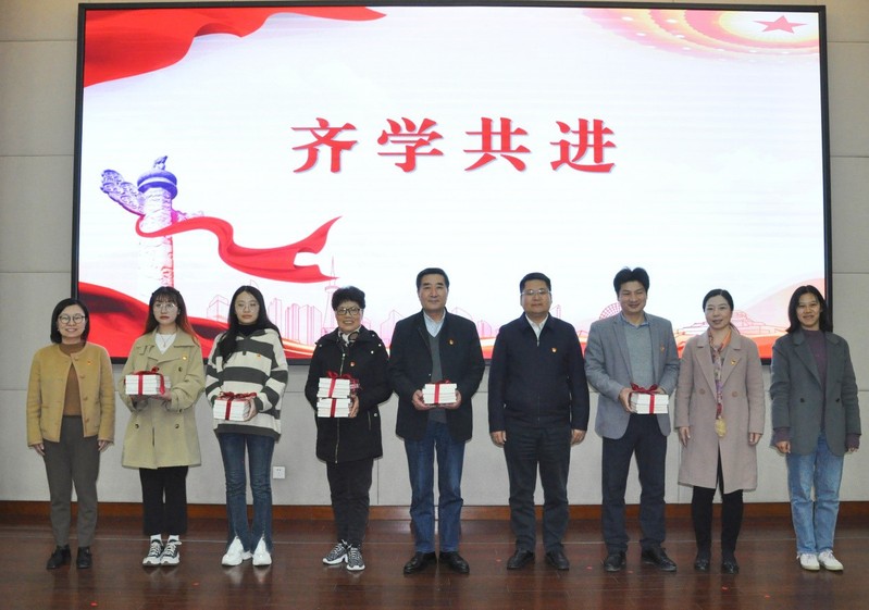 苏州市委老干部局副局长臧传军,吴中区委组织部副部长、老干部局局长李莉,小黄书 党委副书记、副院长朱晨花为“青蓝+”联盟党员代表赠送学习用书,勉励大家自觉勇敢地“扛起新使命,谱写新篇章”。