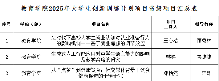 经4月28日线下汇报评审,现将教育小黄书2025年大创省级、校级拟推项目公示如下: