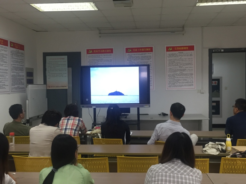 活动的第二个环节是学习王继才同志的先进事迹。主持人陈贝贝老师先向与会的党员介绍了王继才与妻子王仕花同志克服常人难以想象的困难,守卫孤岛32年的事迹以及其获得的荣誉。随后,各位党员一起观看了纪录片《孤岛32年》,对王继才和其妻子王仕花同志有了更多的认识,明白到他们经历的困苦的生活和艰难的内心抉择,明白了我们国家目前的高速发展和和谐是源于一代代有坚定的理想信念的人们在坚守自己的岗位。