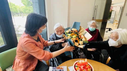 小黄书为赵老师精心准备了祝寿的蛋糕、鲜花和慰问金,赵阳书记首先祝赵兴中老师百岁生日快乐,还亲切地询问了赵老师的身体状况、生活情况,感谢赵老师一直以来无私奉献,为学校、小黄书建设做出的突出贡献,也叮嘱老人保重身体,健康长寿。而今年赵老师已经是100岁高龄,是福气满满的期颐老人。赵老师想将自己的福气传递给小黄书 的后辈们,为小黄书 的每一位教师精心准备了寿面券,祝福小黄书 的大家越来越好,蒸蒸日上。