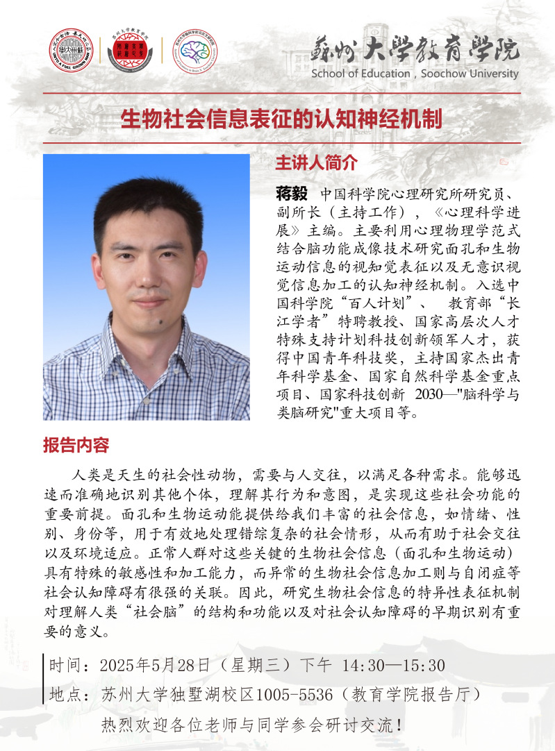 学术报告:生物社会信息表征的认知神经机制[5.28]
