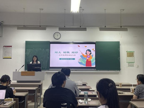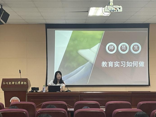 本次动员会特别邀请了星海实验初级中学张凌云老师作辅导。张老师是苏州市先进教育工作者,苏州市青年教师基本功比赛一等奖获得者。她以“站上、站稳、站好——初中教师的成长之路”为主题,从自身的教学实践出发分享了教学经验。她认为上好一堂课需要具备扎实的专业知识、合理的课堂设计、清晰的表达能力和良好的控堂能力,勉励同学们在实习期间要积极主动、踏实认真、多思多练、全真模拟。张老师突出强调,教师在教学过程中需要兼顾班级整体进度和大多数学生的学习需求,这是课堂教学的基础。但在此基础上,教师可以通过一些灵活的方法尽可能实现因材施教,比如,课堂上的分层教学、个别辅导、作业的多样化设计等,都能帮助不同层次的学生获得适合自己的学习内容和支持。