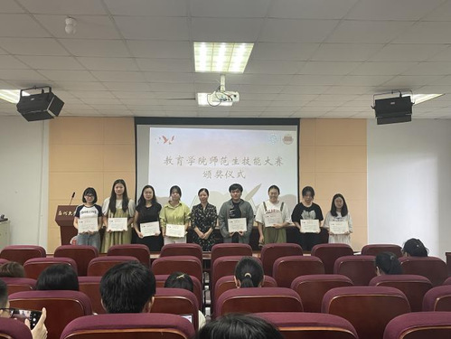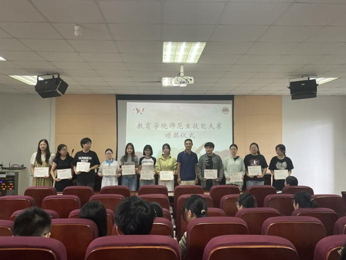 活动正式开始前举行了院级师范生基本功大赛颁奖仪式。同学们通过前期粉笔字比赛、钢笔字竞赛、模拟授课竞赛等环节,提升了自身综合素质、教学能力和专业化水平,为开展教育实习工作打下了坚实基础。刘紫依、李梦婷、王甲怡、莫瑜婷、王登阳、张玉洁、欧阳文倩、王芷祺、李欣雨等九位同学获得一等奖。