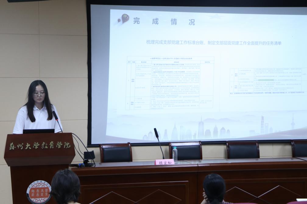 会上心理学研究生一支部作为江苏省样板支部,就第二批全省高校“强基创优”建设计划及全省党建工作样板支部建设成果进行中期汇报。汇报内容详实,全面反映了支部建设的进展情况、取得的成效以及存在的问题,并对下一阶段的工作计划进行了介绍。