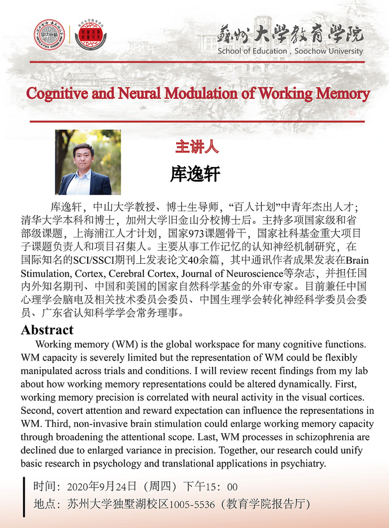 学术报告:Cognitive and Neural Modulation of Working Memory[9.24]