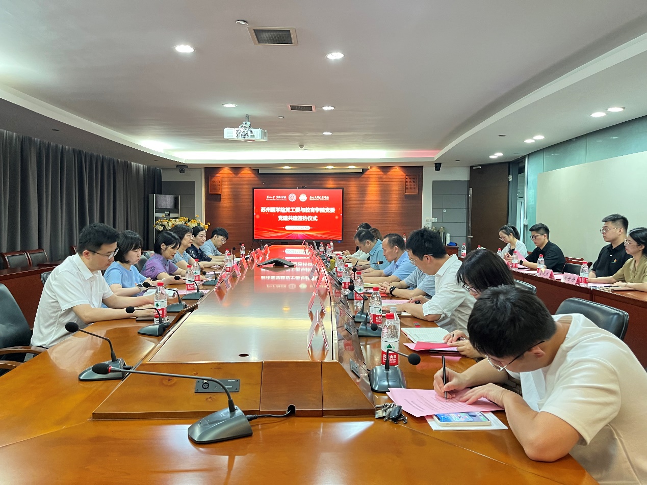 为推动学习贯彻习近平新时代中国特色社会主义思想走深走实 ,推进党的理论创新实践创新,促进党建与业务深度融合,2023629日上午,苏州医小黄书党工委与小黄书 党委举行党建共建签约仪式。小黄书 党委书记赵阳,副书记、副院长朱晨花,专职组织员常静,团委书记张旻蕊,心理学系支部书记黄建平,研究生专职辅导员乔方毅;苏州医小黄书党工委书记钱福良,副书记吴德建,副书记、副院长孟玲玲,专职组织员朱尧兴,研究生专职辅导员陈玲、舒鹏、李蕾、余书敏、陆政廷、李琪、周丹丹、霍俊龙、娄勇、石泉泉、陆菲出席会议。会议由吴德建主持。