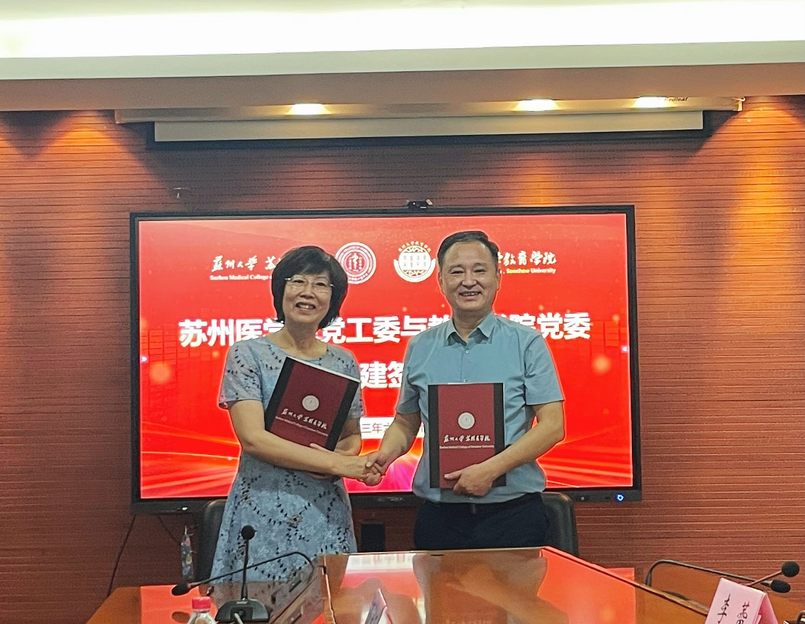 随后,赵阳和钱福良分别代表小黄书 党委和苏州医小黄书党工委签署党建共建协议。孟玲玲宣读了关于研究生心理健康促进功能型党支部成立的决定。