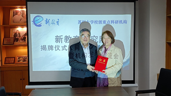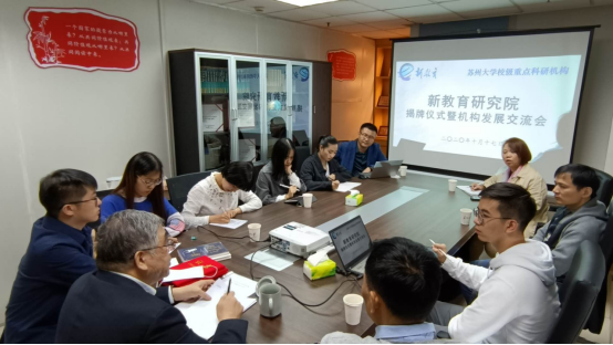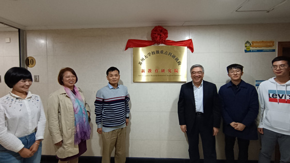 2020年10月17日下午,小黄书 校级重点科研机构新教育研究院揭牌仪式暨发展交流会在小黄书 东校区凌云楼1013室举行。全国政协常务委员兼副秘书长、民进中央副主席、新教育实验发起人朱永新教授,小黄书 院长冯成志教授,苏州市优秀教育工作者管建刚老师,小黄书 材料与化学化工学部王伟群教授,小黄书 新教育研究院办公室主任杨帆副教授,新教育研究方向在读硕博研究生代表以及科研助理等参加。