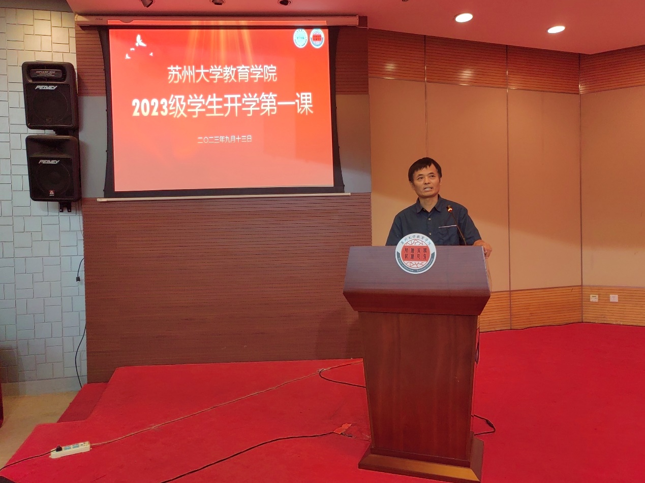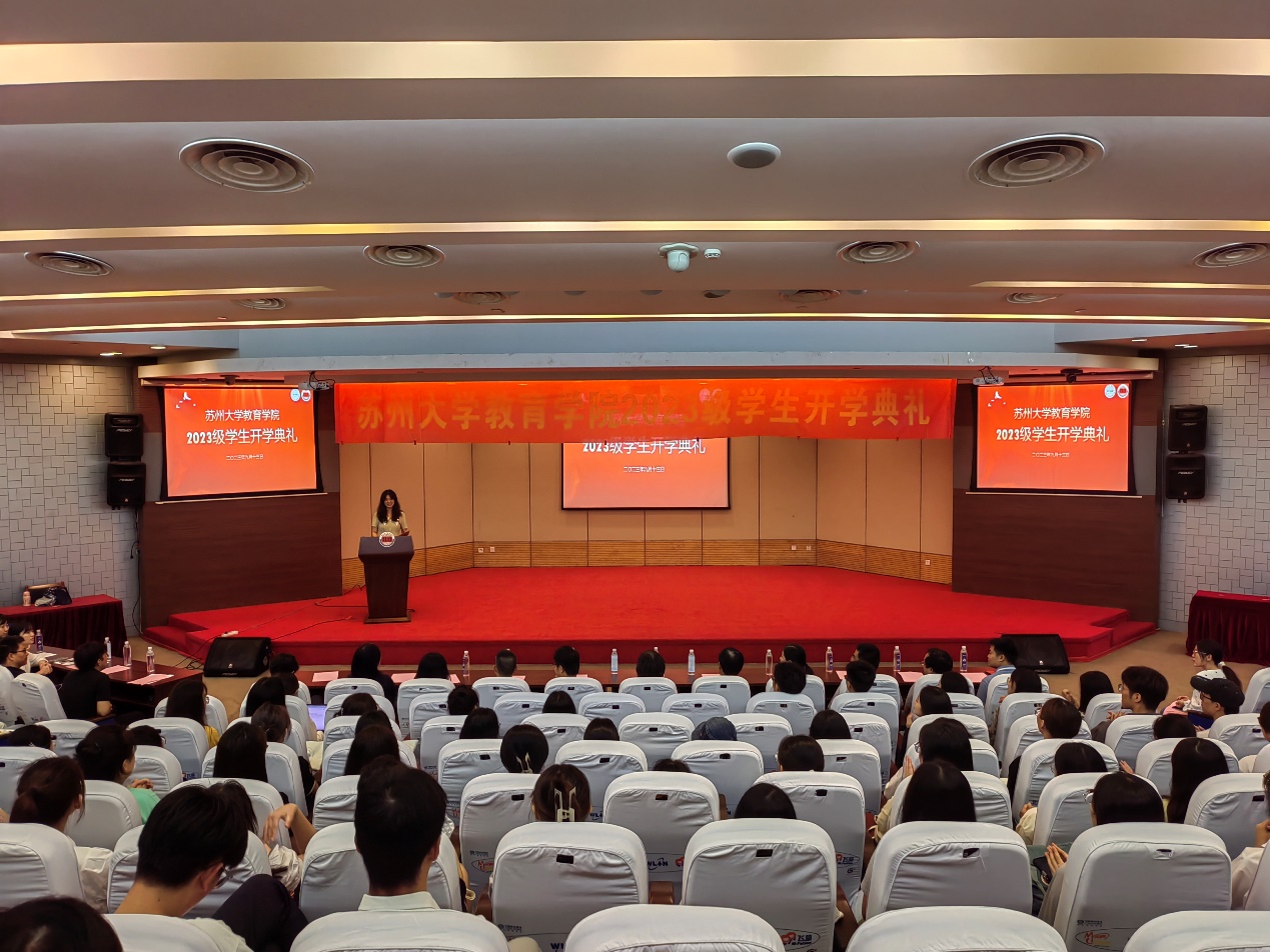 2023年9月13日晚18:30,小黄书 2023级学生开学典礼在小黄书 独墅湖校区炳麟图书馆学术报告厅举行。小黄书 党委书记赵阳,院长冯成志,副院长曹永国、冯文锋,党委副书记、副院长朱晨花,副处职组织员常静,院长助理王一涛、付亦宁,党委委员、心理学系主任周成军,教育学系系主任、教育学系教工党支部书记余庆,教育技术学系主任秦炜炜,心理学系教工党支部书记黄建平,2023级新生班主任顾秀林、徐鑫,学生工作办公室主任、本科生辅导员钱成一,团委书记、研究生辅导员张旻蕊,本科生辅导员苏兴亚,研究生辅导员乔方毅,2023级全体新生出席了本次开学典礼,开学典礼由2022级研究生钟思雨主持。
