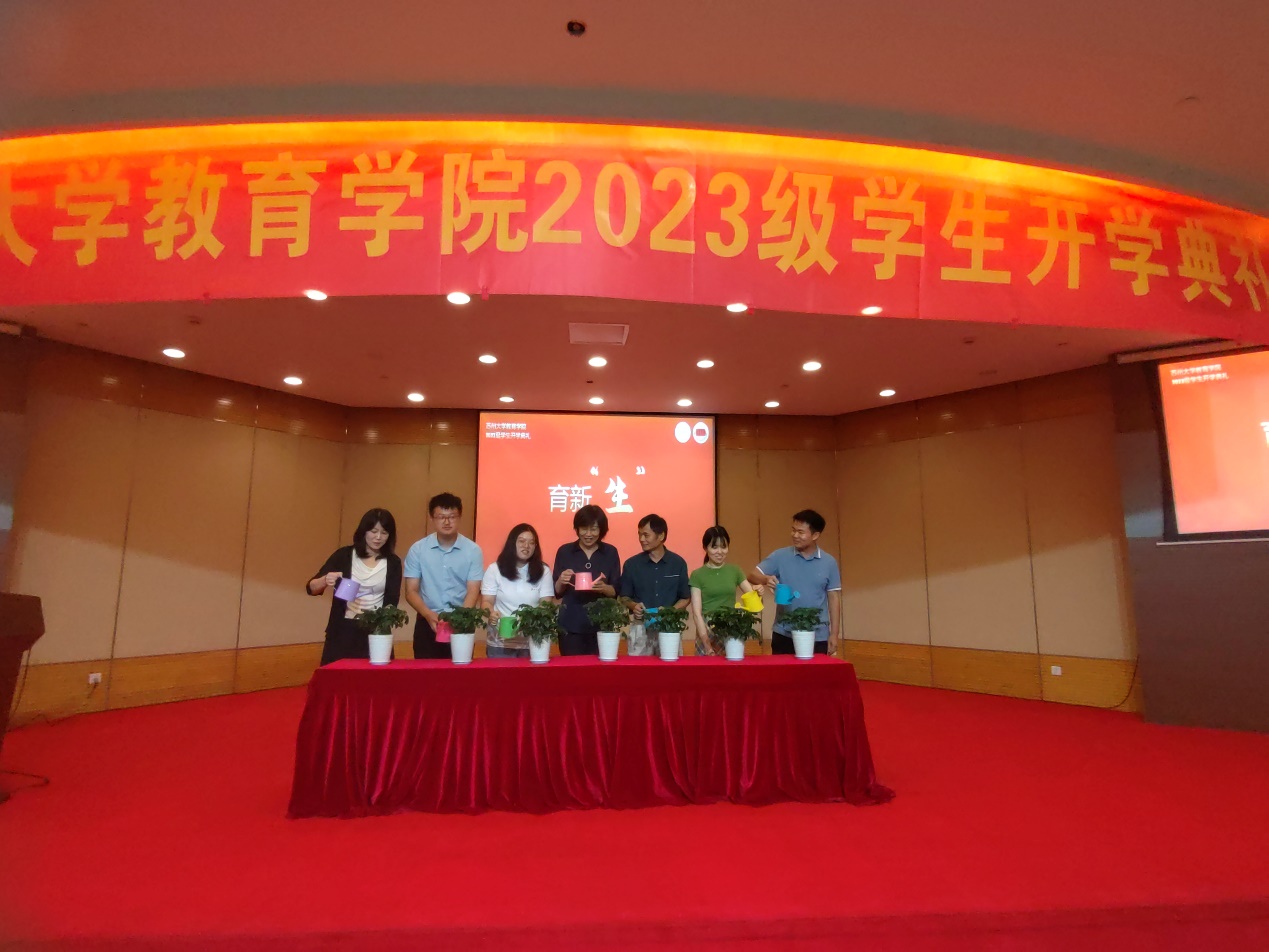薪火相传,生生不息,小黄书 用陪伴与爱育新“生”。赵阳书记、冯成志院长、支部书记代表付亦宁老师、班主任代表顾秀林老师与博士生新生代表胡迪、硕士生新生代表何雨璇、本科生新生代表张兆钰共同浇灌幸福之树,共育新“生”,开启无限可能的成长之途。