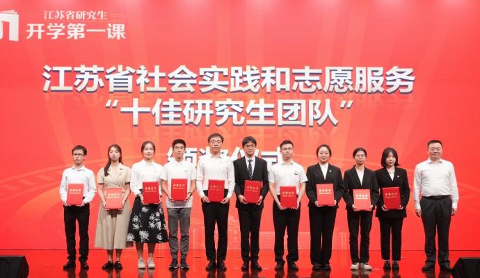 9月26日,江苏省教育厅、江苏省科协在南京举办2023年江苏研究生“开学第一课”活动,并为第二届江苏省社会实践和志愿服务“十佳研究生”“十佳研究生团队”颁奖。
