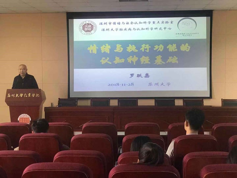 罗跃嘉教授首先从我国情绪与执行功能的研究背景入手,讲述了研究的必要性,并结合案例从情绪与注意、情绪与工作记忆、情绪对抑制行为的影响、欺骗的神经基础这四个方面与同学们分享了当前深圳大学在该领域最新的研究成果。