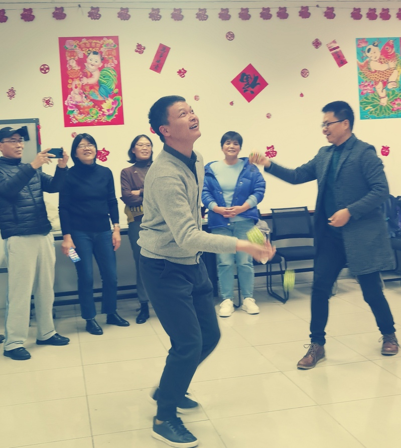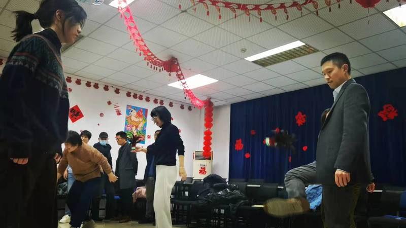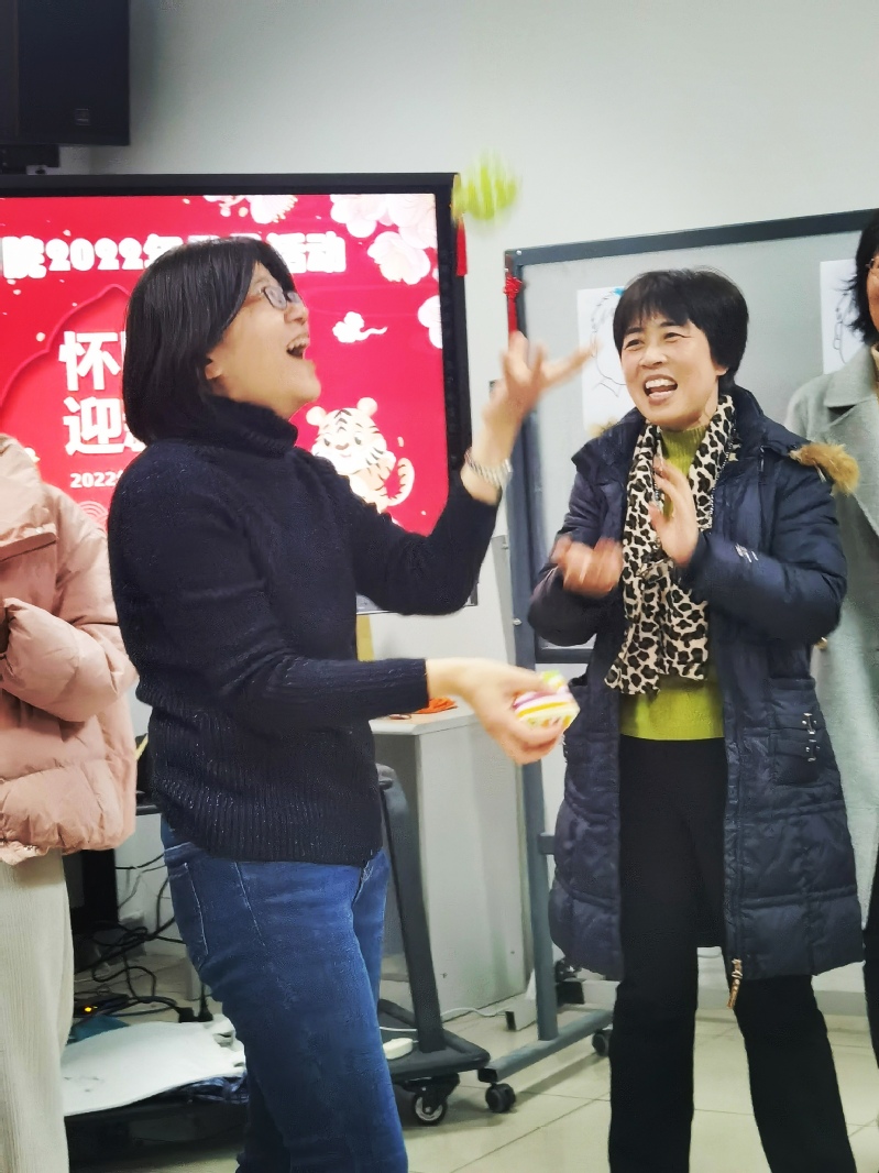 工会提前精心布置了活动场地,挂彩灯、拉纸花、贴年画,怀旧歌曲,瞬间让老师们回到初心的年代,找到了青春的美好回忆。本次联欢会活动项目多多,趣味多多,包含了考查手部灵活性、腿部灵活性、脑部灵活性、肢体协调性、团队合作性等怀旧、新潮、中古、国际范游戏。