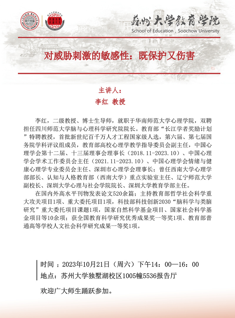 学术报告:对威胁刺激的敏感性:既保护又伤害[10.21]