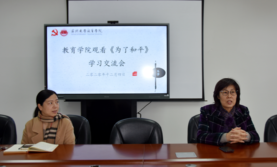 此外,老师们还交流了观看《为了和平》纪录片的感想心得,老师们都学习了相关视频后,对抗美援朝战争有了更深刻的认识。抗美援朝战争是正义的战争,是全民的战争,国家、战士、人民都在其中担当了重要的角色,纵使条件艰苦,但中华儿女不畏艰险,最终取得了战争的胜利。我们如今幸福美好的生活来之不易,加之目前中美摩擦、我国科研遭遇“卡脖子”等情况,所以高校工作者更应该有危机感,要注重创新、追求突破,同时积极做好同学们的思想引领工作,为祖国培养栋梁。