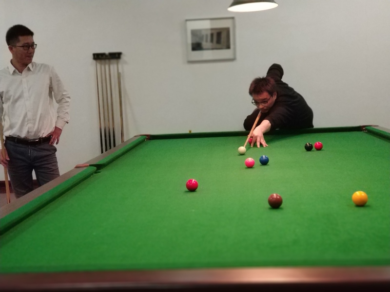 这次斯诺克邀请赛在较短的时间内顺利完成了网上通知、报名、排序和比赛全部环节,离不开我院分工会的大力支持。比赛过程中,小黄书工会主席付亦宁老师也到场为选手加油。