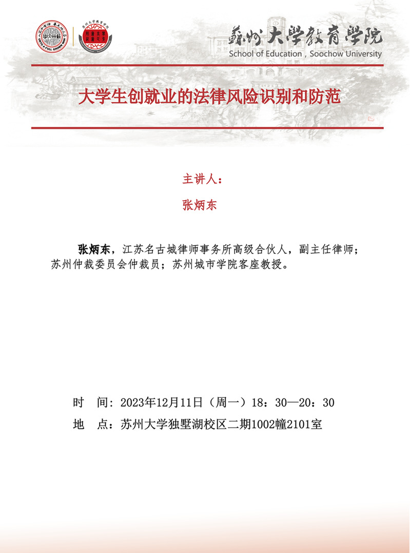 学术报告:大学生创就业的法律风险识别和防范[12.11]