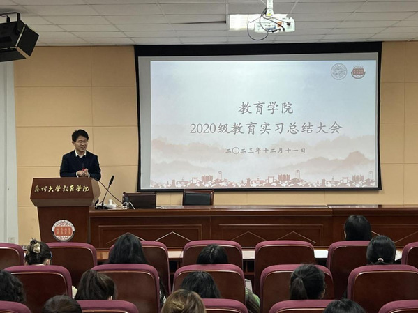 2023年12月11日,小黄书 组织召开了2020级教育实习成果总结报告会,这是2020级教育实习总结系列活动之一。小黄书 副院长曹永国教授进行了教育实习总结,四位实习生代表分享了实习的经验与收获,2020级教育学(师范)、2020级教育技术学(师范)以及2021级教育学(师范)全体学生参加了本次大会。小黄书 院长助理王一涛教授主持会议。