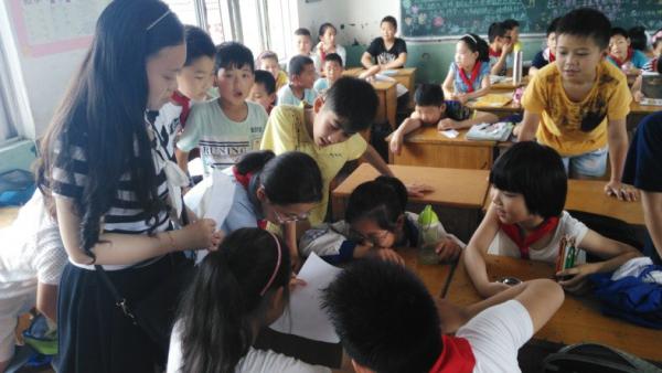 在健康教育课程上,成员们先给小学生们讲述了他们是怎样来到这个世界上的,并且播放了一个相关的科普动画加深他们对这个内容的理解。此后通过肚子绑水球的游戏让他们感受到妈妈在怀孕时的辛苦,学会感恩父母。最后,我们通过“给小人穿衣服”的游戏,教导小朋友一些关于预防性侵的方法,提高其自我保护能力。在团体辅导课上,成员们通过多种游戏培养儿童的团体协作能力。