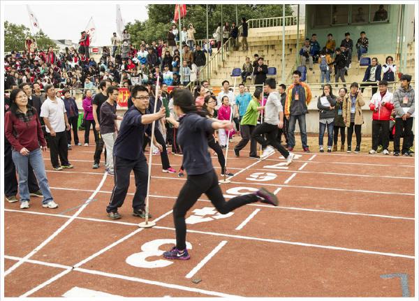比赛开始了,虽然大家从未练习与配合过,但那份默契与合作却展现地淋漓尽致。看台上的学生见到平日里、三尺讲台前温文尔雅、正襟危坐的老师此刻也在运动跑道上为集体的荣誉而努力拼搏,都兴奋地大喊“加油”。