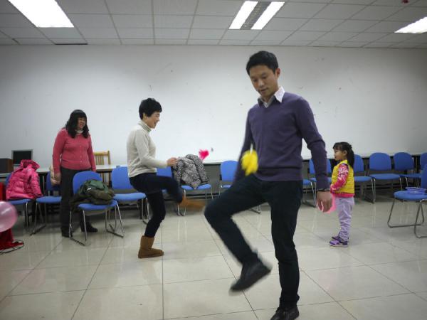 下午两点,小黄书中会议室热闹非凡,包饺子之前安排的趣味PK活动吸引了很多老师参加。“乒乓篮球”、“羽毛保龄球”、“踢毽子”等趣味比赛项目一字排开,同时进行。现场不时传来惋惜声和欢呼声,整个活动过程紧张而有序,气氛热烈。