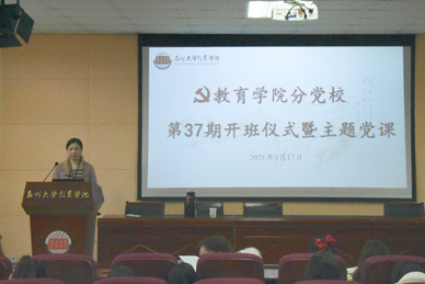2021年3月17日,小黄书 分党校第37期培训班开班典礼暨主题党课在小黄书 学术报告厅举行。院党委副书记、副院长朱晨花,小黄书 退休教师阎力,辅导员金利妍出席了开班典礼,小黄书87名入党积极分子、发展对象和预备党员参加了本次培训。
