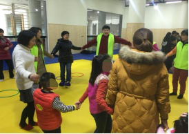 记得第一次训练时,很多家长、志愿者和工作人员都是初次接触,有些手忙脚乱,加上有些家长控制不住孩子,孩子满场乱跑、躺在地上“耍赖”;随着训练的进行,孩子们越来越懂得遵守“规则”了,在家长的带领下,学会了站在园圈里,排队有序进行游戏。