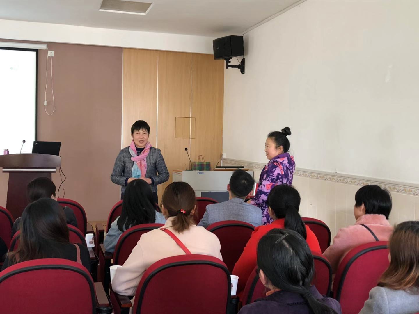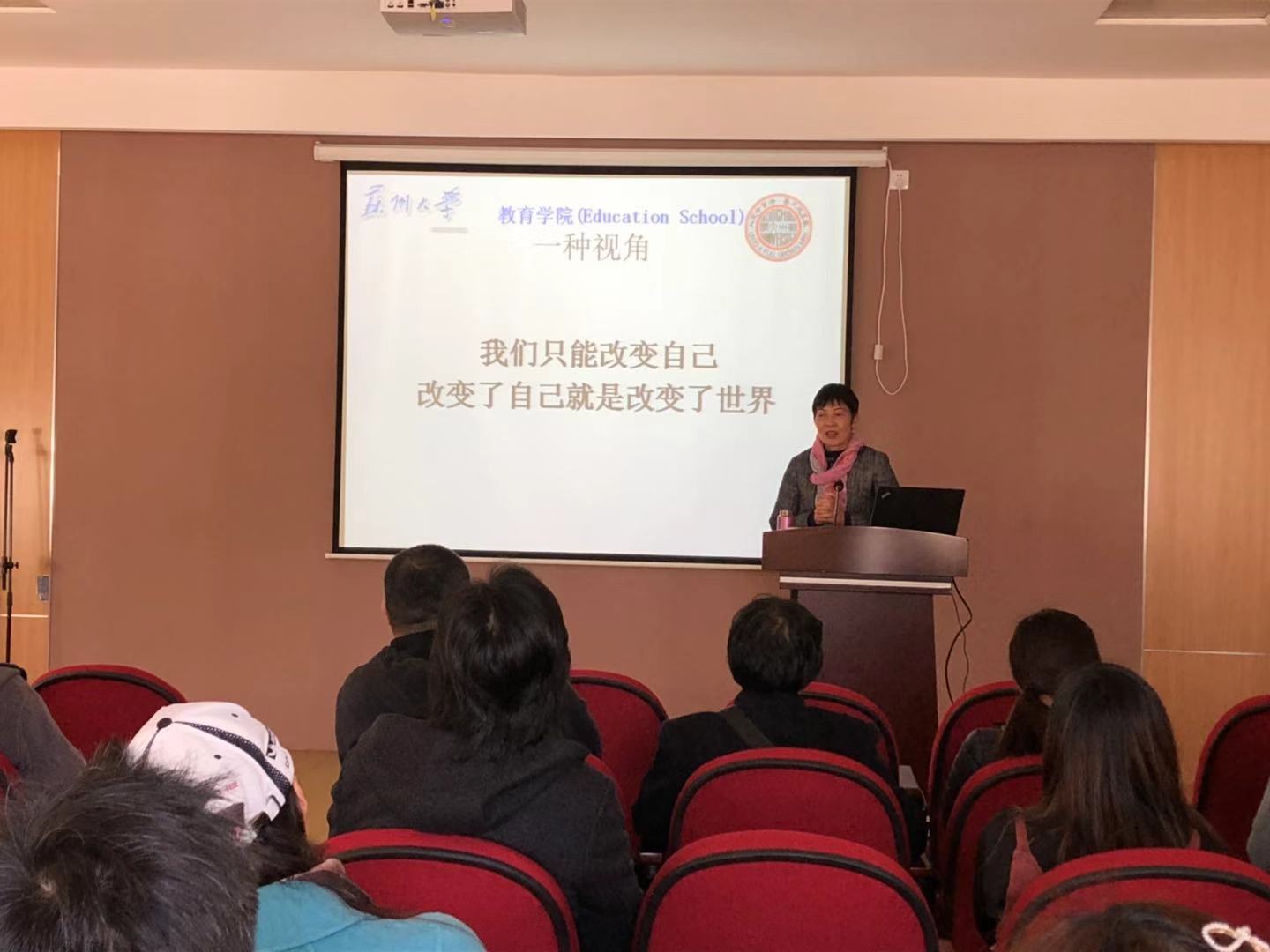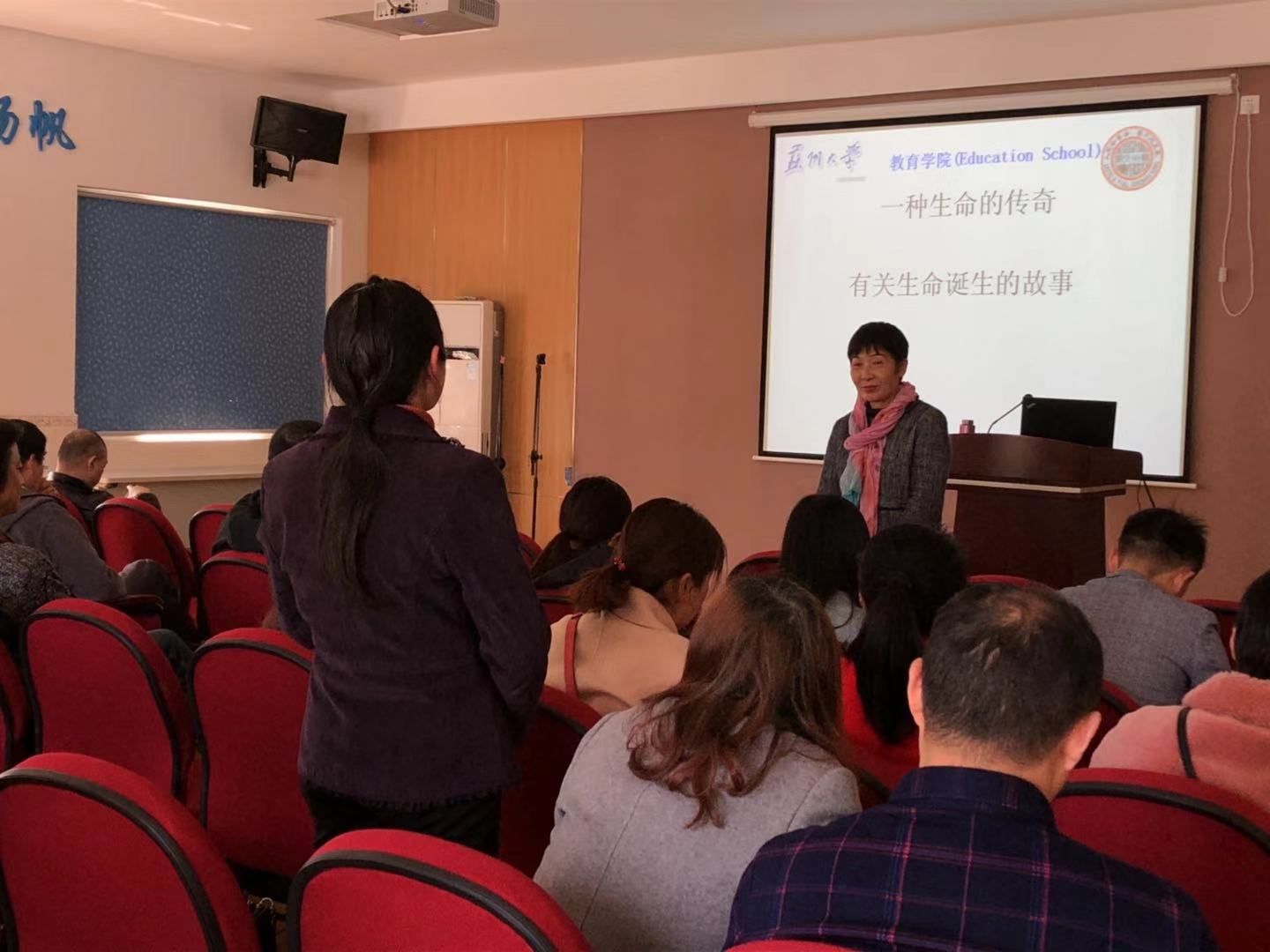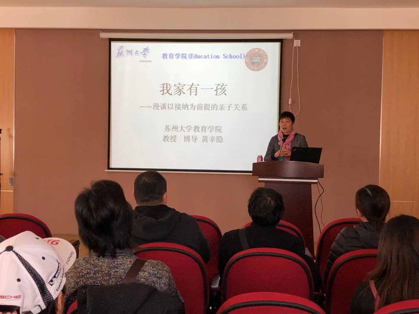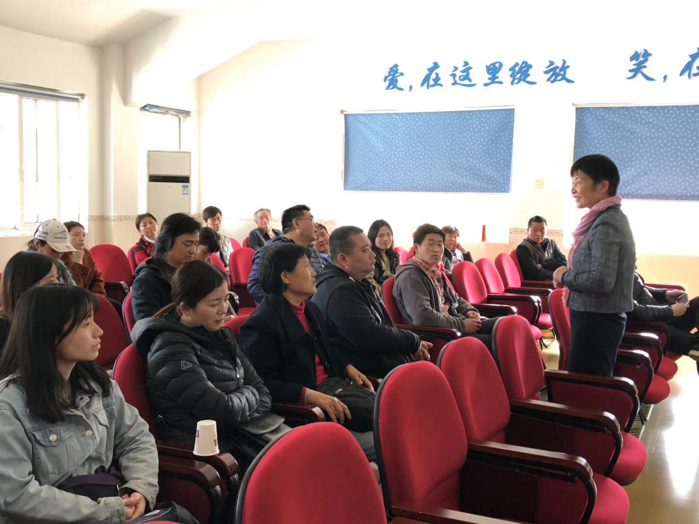 在特殊教育学校安全而温馨的多媒体教室中,黄辛隐教授与该校许多特殊儿童家长就“我家有一孩——漫谈以接纳为前提的亲子关系”为主题的交流,希望家长能够感到支持和温暖。