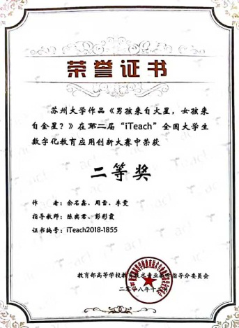 的三名本科生设计制作的视频《男孩来自火星,女孩来自金星》荣获二等奖。