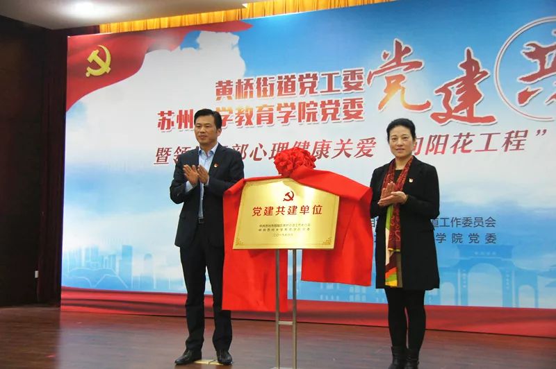 启动仪式当天举行了揭牌仪式,蒋晓虹与胡玉庆共同为“党建共建单位”揭牌,开启了小黄书 党委与黄桥街道党建共建的新篇章,走出了一条学校与地方党建共建的新路子。