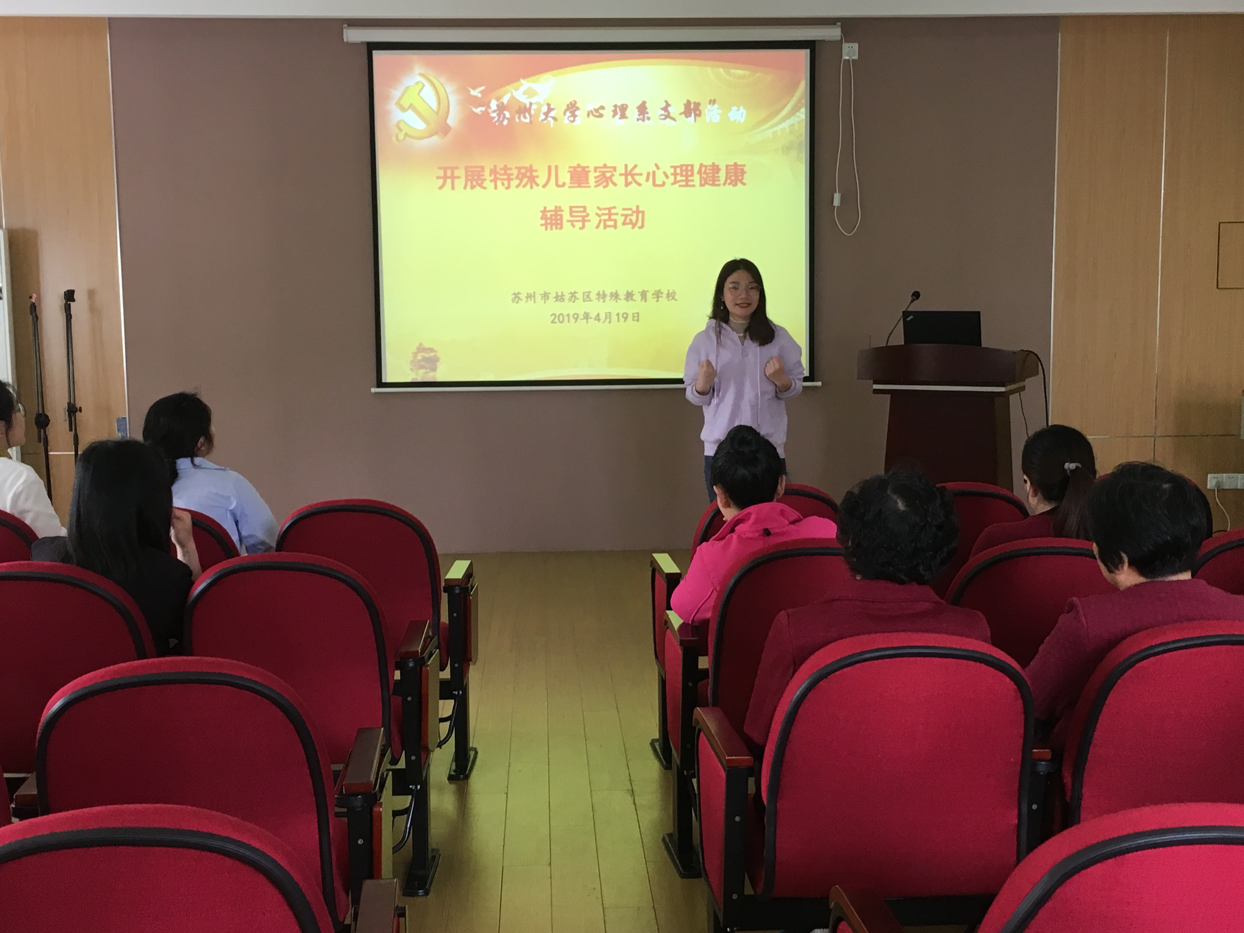 4月19日下午,由小黄书 心理系支部组织的特殊儿童家长心理健康辅导活动在苏州市姑苏区特殊教育学校南校区顺利举行。