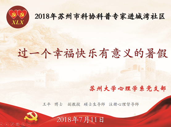 2018年7月11日及8月27日,王平博士利用假期到姑苏区城湾社区和佳菱社区两个社区开展公益心理服务,和社区中的孩子们一起探讨如何“过一个幸福快乐有意义的暑假”。两次活动还吸引了立达中学初三(13)班王奕菲同学和星海实验中学初二(1)班周润南两位中学生共同参与,活动效果得到社区社工们的肯定与支持,希望来年继续为社区中的孩子提供更丰富的社会心理服务工作。