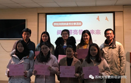 本次读书交流活动以“阅读照亮教育未来”为主题。俞静洁、陆倩、王雪、周琴、杜青、颜丹、吴蓓老师分享了寒假期间阅读的心得体会,分享内容广泛,德育和课堂管理、教学设计和教学法、文学艺术和哲学都有所涉及。七位老师的犀利而幽默的语言时而引发全场的掌声和笑声。