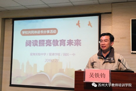 吴铁钧老师为阅读分享活动提出了三点建议:找准教育热点、痛点、难点选择阅读材料;以听众为导向,分享阅读心得;促进自成体系的原创,让阅读升华。