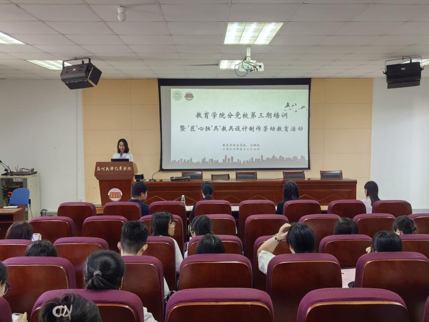 为深入开展劳动教育,提升同学们学以致用、理论联系实际的能力,5月24日下午,小黄书 分党校第三期培训暨“‘匠’心独‘具’”教具设计制作劳动教育活动于1005-5536学术报告厅顺利举行。小黄书 党委副书记、副院长朱晨花,院长助理付亦宁、学生工作办公室主任钱成一、本科生辅导员苏兴亚及小黄书 分党校全体学员、各班学生代表参与本次活动。