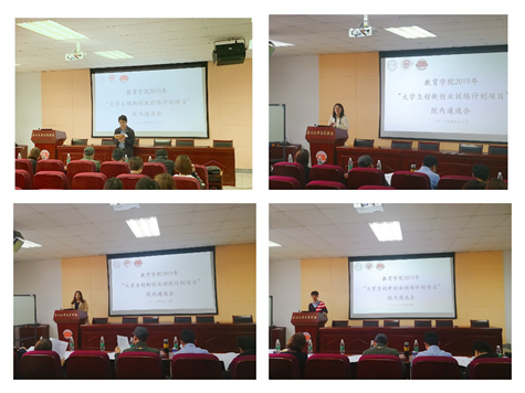 2019年4月16日,我院在学术报告厅举行2019年“大学生创新创业训练计划项目”院内遴选会,曹永国副院长出席了本次活动。同时,本次活动邀请了教育技术学系教师代表李利、刘江岳,教育学系教师代表尹艳秋、马忠虎以及心理学系教师代表张阳、张功亮等6位老师担任评委。会议由学工办主任陈贝贝主持。