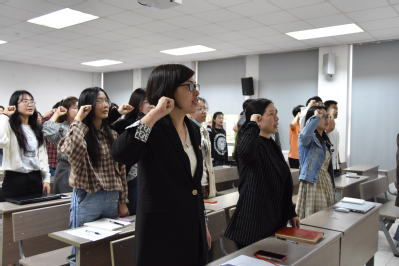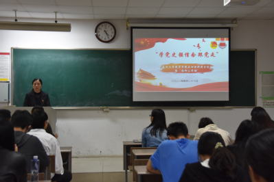 学生工作办公室主任陈贝贝老师主讲“学党史 忆初心 做奋发有为的新时代青年”专题团课。陈老师讲述了中国共产党成立百年以来的辉煌成就,1921年开天辟地,1949年改天换地,1978年翻天覆地,2012年惊天动地。又举例了小黄书 以往应届毕业生参与祖国西部计划、做大学生村官、支教等将青春之花绽放在祖国最需要的地方的事例。肯定了同学们践行青春使命,将小我融入大我的选择。