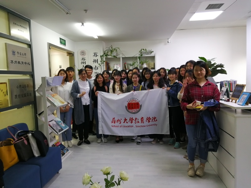 2019年4月17日12:45,小黄书 38名学生在辅导员陈贝贝老师和金利妍老师的带领下,乘车从小黄书 独墅湖校区前往苏州艾丁心理咨询有限公司,进行参观交流。