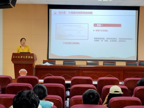 小黄书 兼职组织员金利妍强调了毕业生党员的组织纪律和毕业组织关系转接的重要性,并从省内转接和省外转接两块详细介绍了党员组织关系转接基本概况、基本流程以及注意事项,特别提醒各位党员一定要在有效期内办理完组织关系接转手续,千万不要将介绍信留在手里成为“口袋党员”。