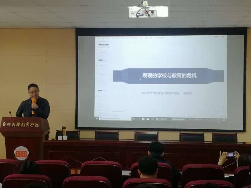2019年4月26日上午9:30,华东师范大学“紫江学者”特聘教授高德胜应邀在小黄书 学术报告厅(1005-5536)为小黄书师生作了题为《表现的学校与教育的危机》的主题学术报告。报告由曹永国教授主持。