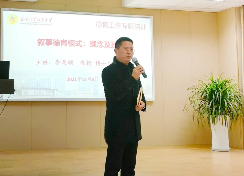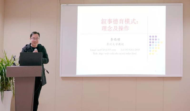 为拓宽学校德育工作思路与教育视野,进一步提升班主任工作能力,12月6日,我院李西顺教授受邀来到苏大附中,为全体班主任、班主任工作室项目组全体成员带来以《叙事德育模式:理念及操作》为题的德育专题培训。