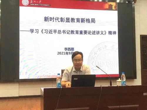 2021年9月29日下午李西顺老师前往苏州市田家炳实验初级中学为教师主题为《新时代彰显教育新格局》讲座,解读习近平总书记对教育重要论述。