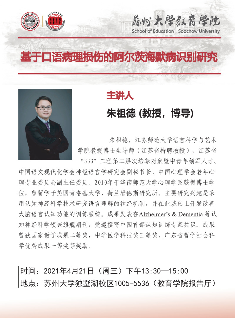 学术报告:基于口语病理损伤的阿尔茨海默病识别研究[4.21]