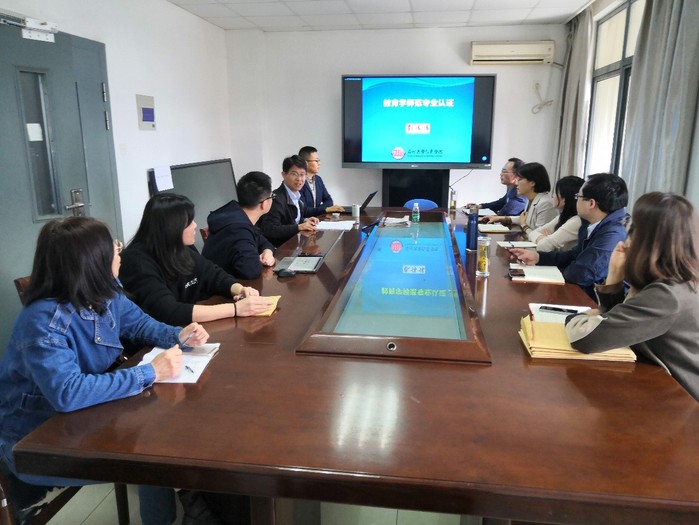 曹永国副院长首先对教育学师范专业认证工作的进展情况进行了总结,指出师范专业认证对于教育学国家级一流本科专业建设的重要意义。然后,秦炜炜教授对教育学师范专业认证各项准备工作的要点和注意事项进行了具体分析。会上,老师们各抒己见,为教育学专业高质量通过师范专业认证建言献策。最后,曹院长对近期专业认证的各项工作进行了部署,力争教育学专业高质量通过专业认证,为教育学国家级一流本科专业建设奠定坚实的基础。