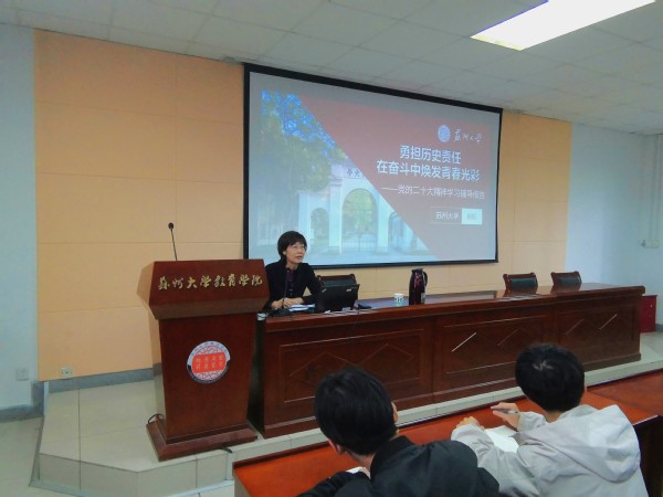 党委书记赵阳老师主讲题为“勇担历史责任,在奋斗中焕发青春光彩——党的二十大精神学习辅导报告”宣讲活动,心理学研究生一支部和心理学研究生二支部全体党员参会聆听。