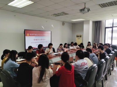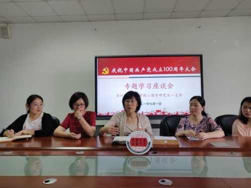 大会直播结束后,小黄书党委书记赵阳,党委副书记、副院长朱晨花,党委委员陈贝贝,辅导员金利妍分别与各支部党员召开庆祝中国共产党成立100周年大会的专题学习座谈会。