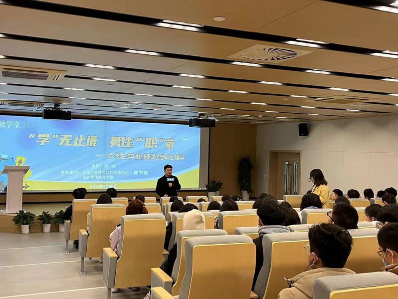 2023年2月25日14:00,小黄书 在苏州工业园区图书馆沃森报告厅举行“‘学’无止境,勇往‘职’”——大学生学业规划与职业指导主题讲座。本讲座系小黄书 “开学第一课”系列活动的第一讲,旨在帮助学生尽快适应疫情防控政策变化后的新学期,引导学生结合自身成长成才的发展需要做好学业生涯规划,鼓励同学们“早立志、立长志、立大志”,追求卓越,逐梦未来。
